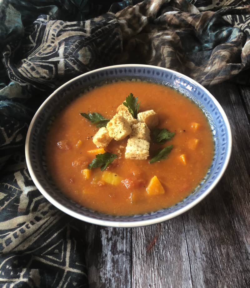 This easy vegetarian soup is hearty and warmly spiced, perfect for enjoying after a walk in the crisp fall air.