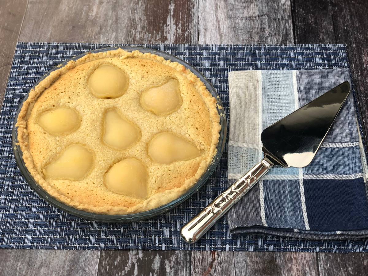 My late mother-in-law's recipe for sweet pears nestled in delicious almond frangipane, all encased in a tender pastry.